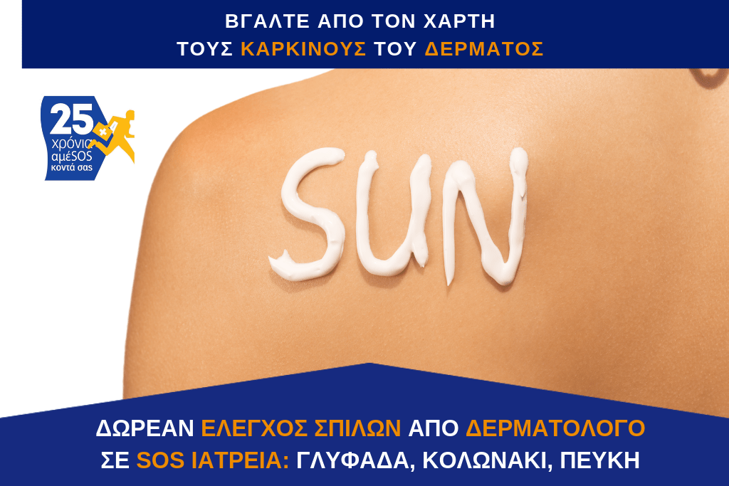 Δωρεάν έλεγχος σπίλων για πρώιμη διάγνωση του μελανώματος και άλλων καρκίνων του δέρματος Με αφορμή την Παγκόσμια Ημέρα Μελανώματος (13 Μαΐου) οι SOS ΙΑΤΡΟΙ προσέφεραν στους πολίτες δωρεάν δερματολογικές εξετάσεις, θέλοντας να ευαισθητοποιήσουν το κοινό για το μελάνωμα που αποτελεί...