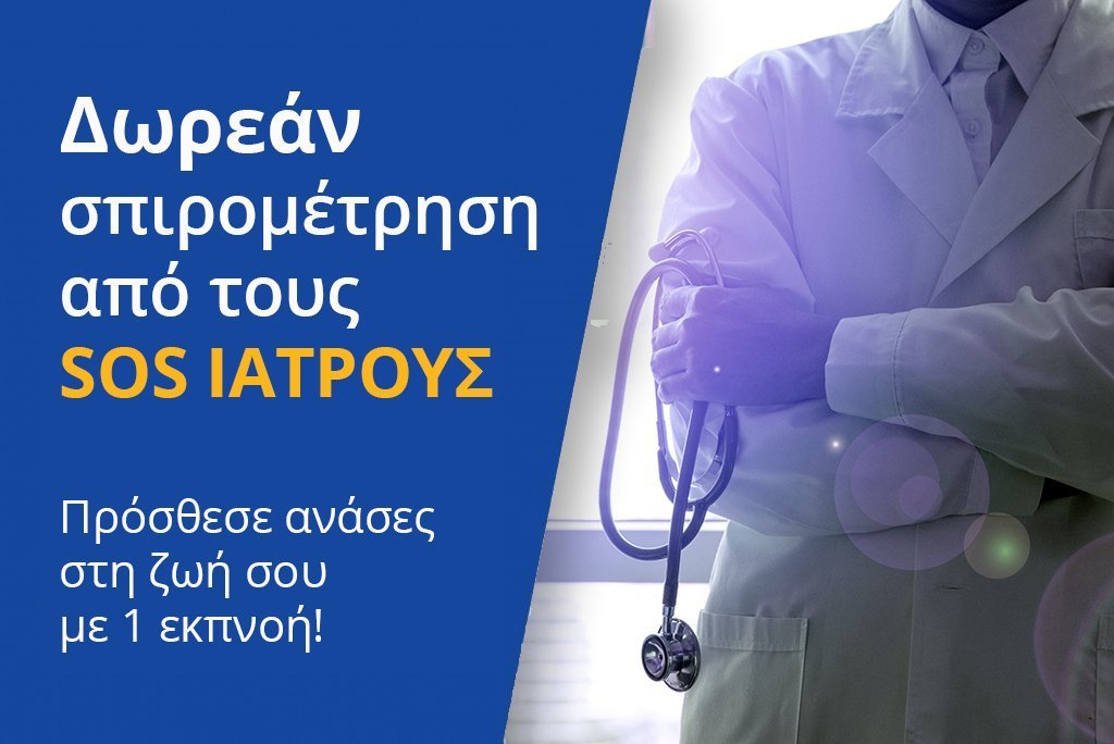 Με όχημα την επιθυμία μας να σας ευχαριστήσουμε εμπράκτως που παραμένουμε η πρώτη σας επιλογή τα τελευταία 25 χρόνια, προσφέροαμε 100 ΔΩΡΕΑΝ ΣΠΙΡΟΜΕΤΡΗΣΕΙΣ στα SOS Ιατρεία μας σε όλη την Αθήνα για τον μήνα Νοέμβριο, με αφορμή την Παγκόσμια Ημέρα Χρόνιας Αποφρακτικής...