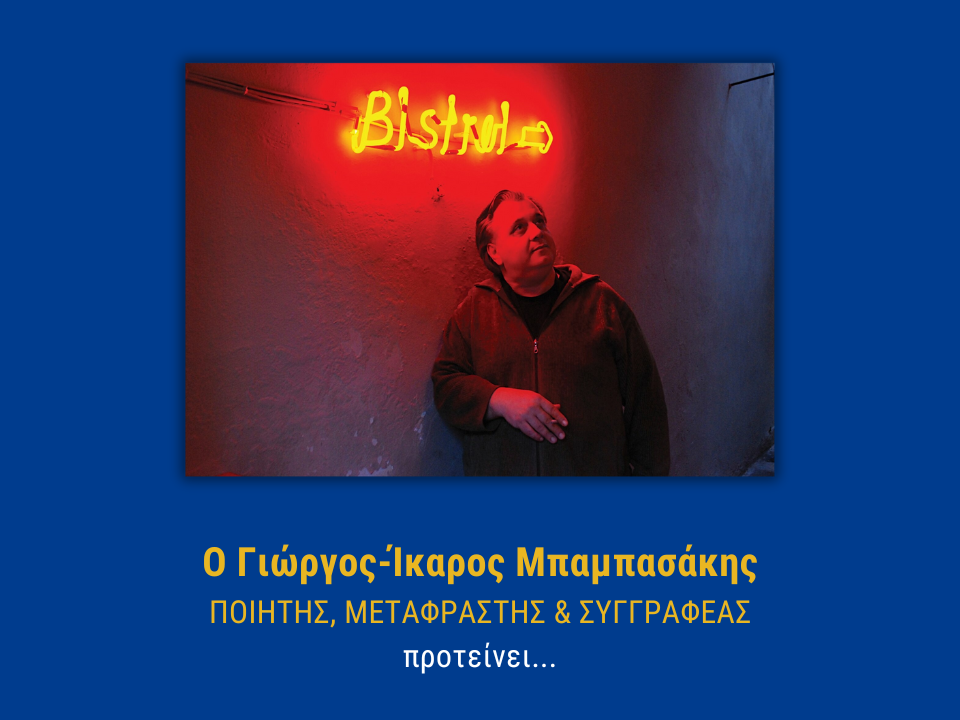 Ποίημα: [πρωινό με θέα τους καθετήρες αιμοκάθαρσης] / ξαπλώνεις στο κρεβάτι της αιμοκάθαρσης / απέναντι από το παράθυρο / το κεφάλι σου βουλιάζει στο μαξιλάρι / οι ήχοι της πόλης / ίδιοι το πρωί και το βράδυ / το μυαλό...