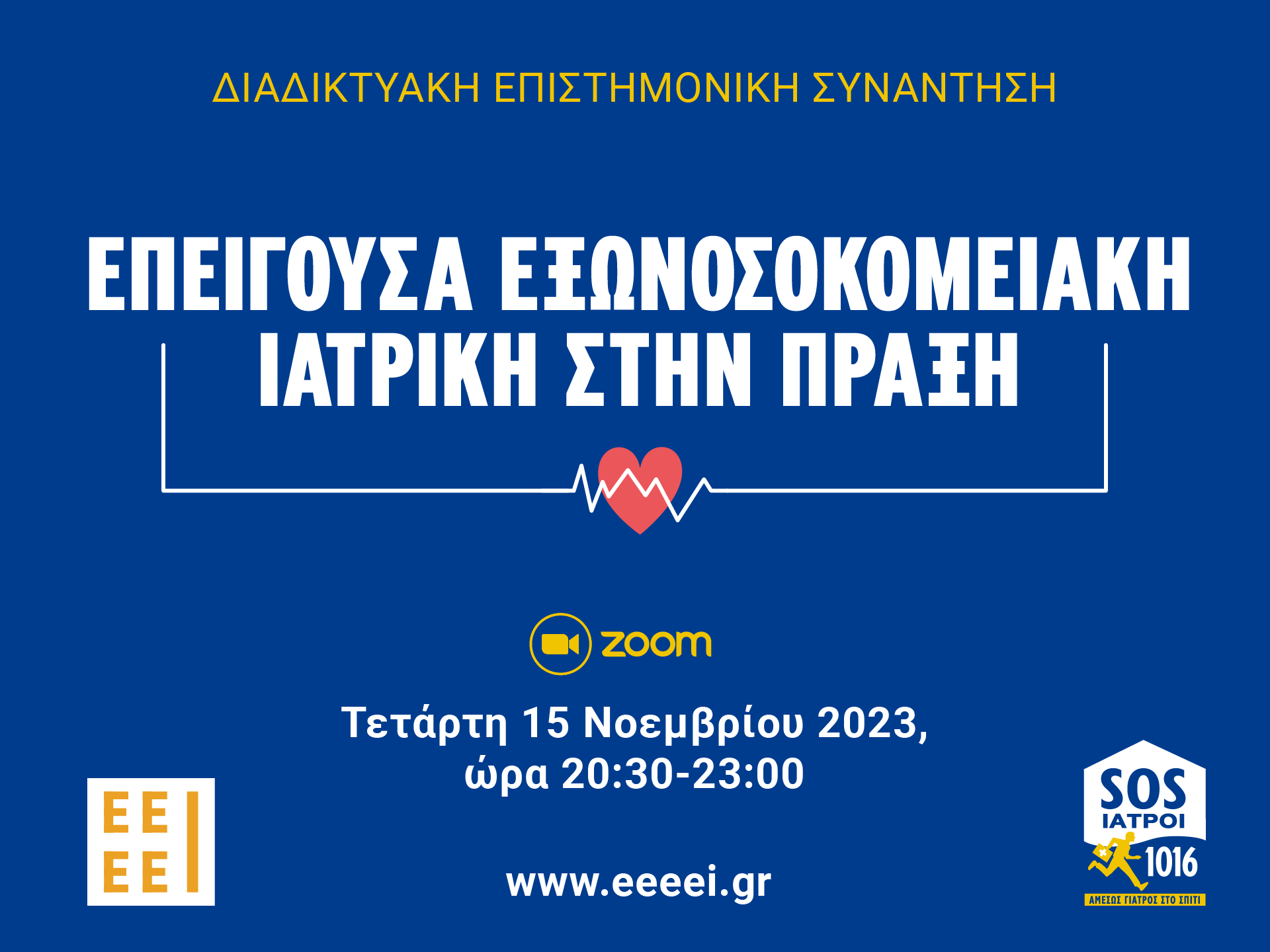 Με μεγάλη επιτυχία πραγματοποιήθηκε η επιστημονική διαδικτυακή συνάντηση "Εξωνοσοκομειακή Επείγουσα Ιατρική στην Πράξη", υπό την αιγίδα της Ελληνικής Εταιρείας Εξωνοσοκομειακής Επείγουσας Ιατρικής και των SOS ΙΑΤΡΩΝ, οι οποίοι συνεχίζουν δυναμικά την από κοινού εκπαιδευτική τους δραστηριότητα δίνοντας τη δυνατότητα συμμετοχής...